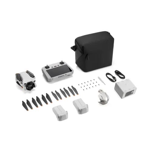 The Fly More Combo includes multiple batteries, propellers, a two-way charging hub, shoulder bag, and the DJI RC controller—making it a ready-to-fly bundle with excellent value and extended flight time.