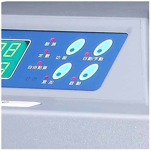 The CHIHUA CH-600A Floor Mounted Bundle Type Heavy Duty Money Counting Machine has 100 notes per 4 seconds counting speed, note capacity up to 200 notes, weight 46Kgs, power supply 220v 50 Hz, power consumption 450 watts, multi-function, easy operation, 100 % accurate counting, alarm in case of incorrect tally, dimensions 355 x 240 x 450 mm, note size range minimum 100 mm x 50 mm / maximum 200 mm x 100 mm.