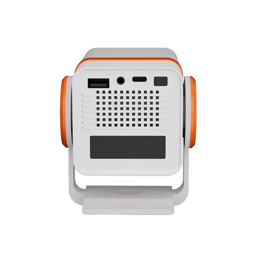 The Dess T1 White Orange Outdoor Portable Mini 4K Projector is a compact and lightweight smart projector designed for on-the-go entertainment, casual home viewing, and outdoor movie experiences. With its stylish white and orange finish and ultra-portable form factor, it delivers convenience without compromising essential smart features.