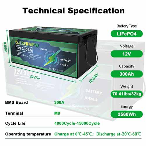 The DJDC 12V 300Ah LiFePO4 Deep Cycle Battery is ideal for users who need maximum energy storage with minimal maintenance. Compared to lead-acid batteries, it provides higher usable capacity, longer lifespan, faster charging, and improved safety.