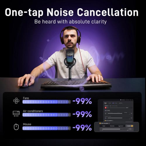 Built with a premium condenser capsule and durable housing, the Maono DM40 Pro ensures clear, detailed, and natural voice reproduction. Its dual-mode connectivity (USB & wireless) allows users to switch seamlessly between desktop recording and cable-free operation, making it ideal for both studio and mobile use. The sleek design is enhanced with customizable RGB lighting, adding a professional gaming aesthetic to any setup.
