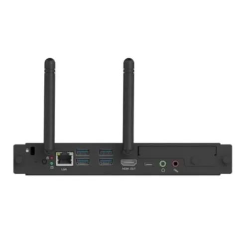 Powered by an 11th Generation Intel® Core™ i5 processor, the OPS62A delivers responsive performance for everyday productivity, multimedia playback, web conferencing, and interactive applications. Its modular design fits directly into the OPS slot of compatible interactive flat panels, eliminating cable clutter and simplifying installation while maintaining a clean, professional setup.